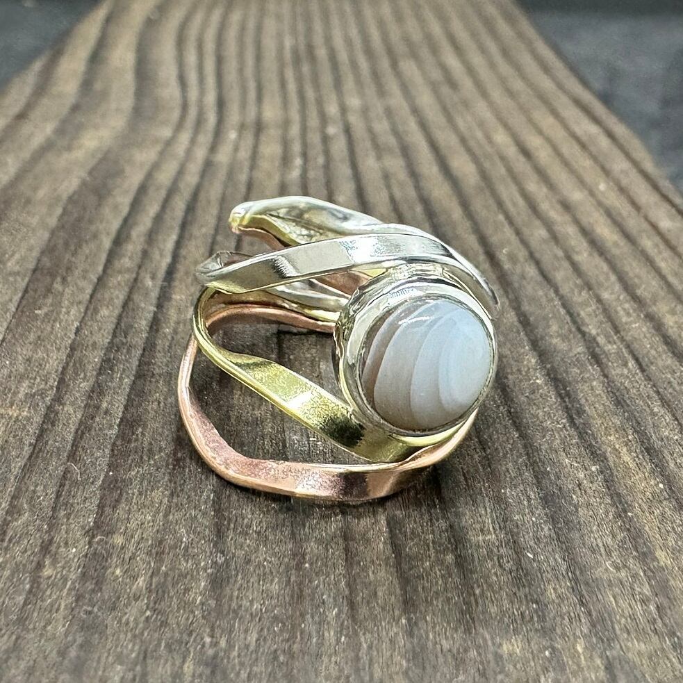3色の金属と一つ一つの線の流れが美しい、存在感と個性のあふれる指輪になりました。