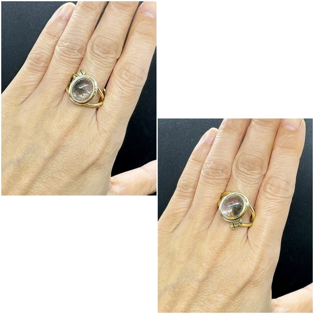 クォーツの中に茶系の針は入っていて一部お花が見える可愛いデュモルチェライトインクォーツです。