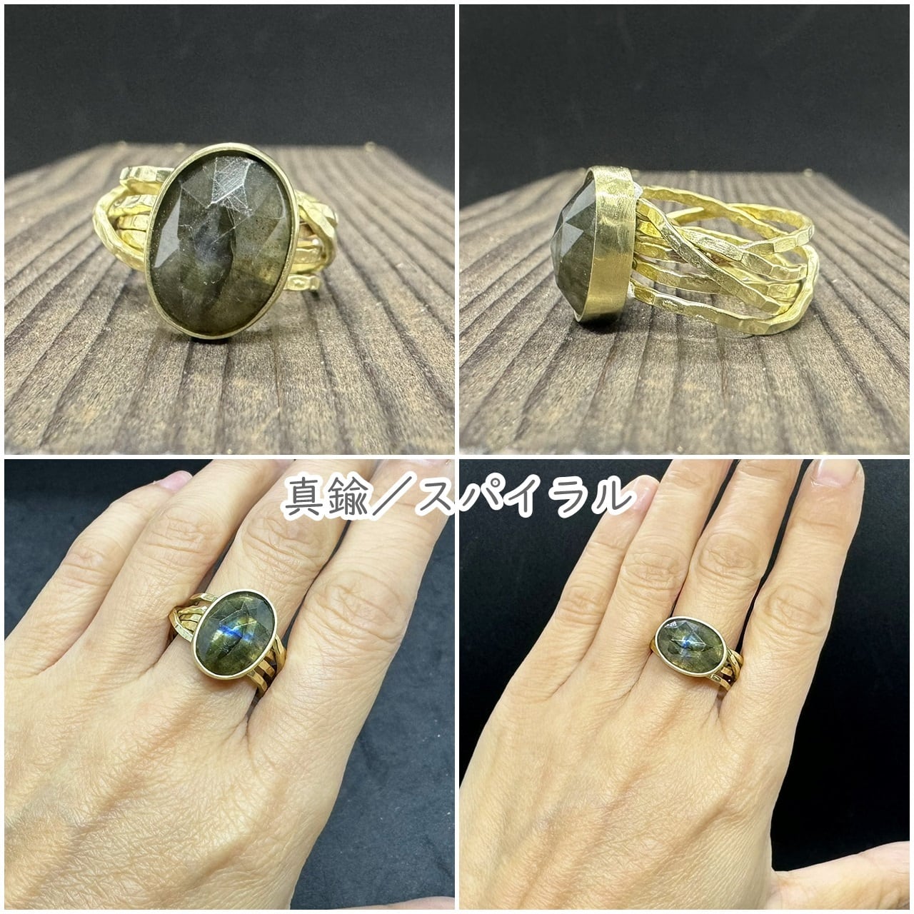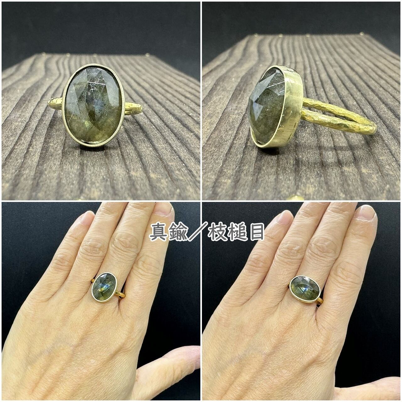 一つめは粗削りのラブラドライトに合わせて、ゴツゴツした槌目を入れたクラフト感のある枝槌目アームです。