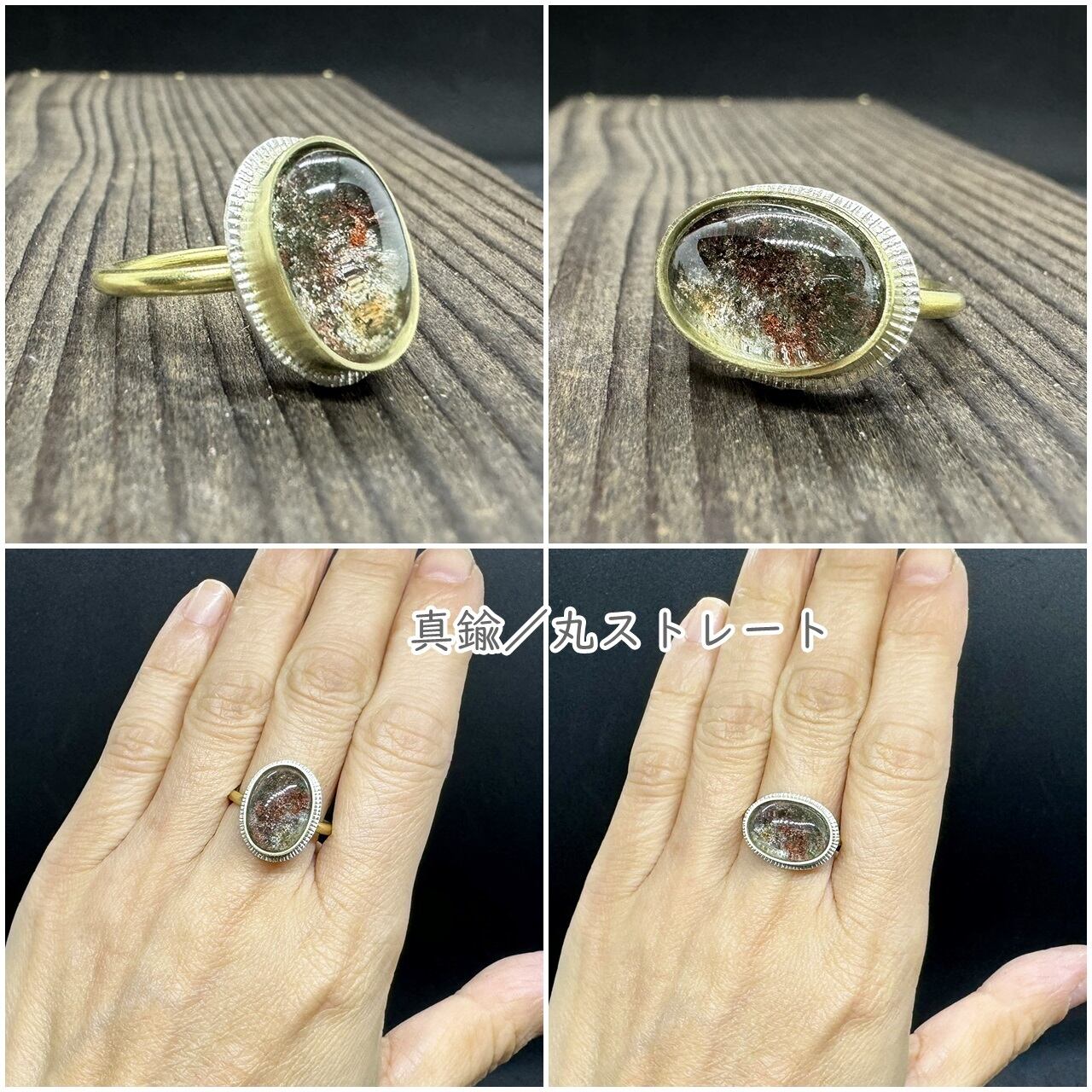 石枠は真鍮で囲み、その周りには細かくシルバーで飾りを入れ石を引き立てています。