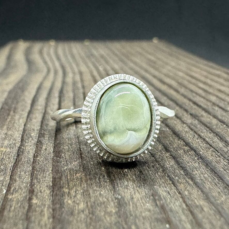 石の周りをシルバーで囲み、その周りは細かな飾りを入れ石を引き立てました。