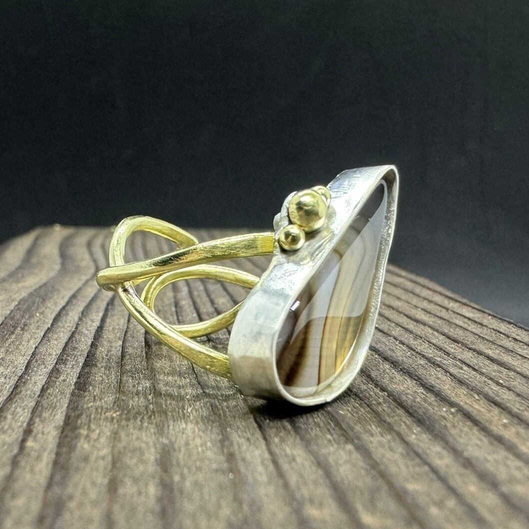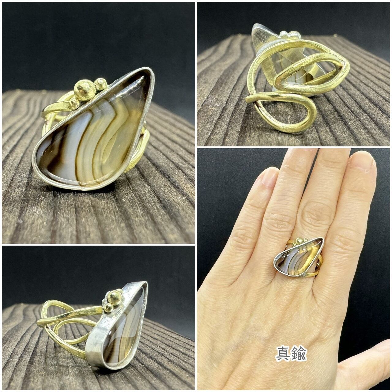 バンデッドアゲート/シルバー950/真鍮