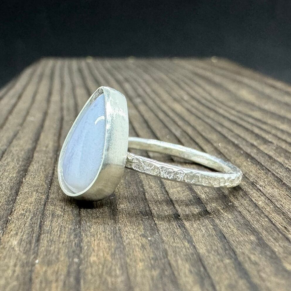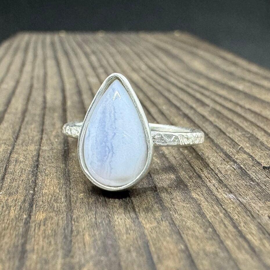 淡いミルキーな感じの水色が可愛いブルーレースアゲートです。
