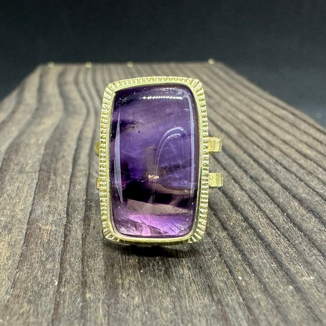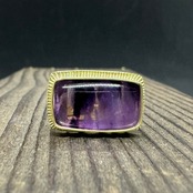 しっかりしたサイズ感のある長方形のトラピッチェアメジストです。