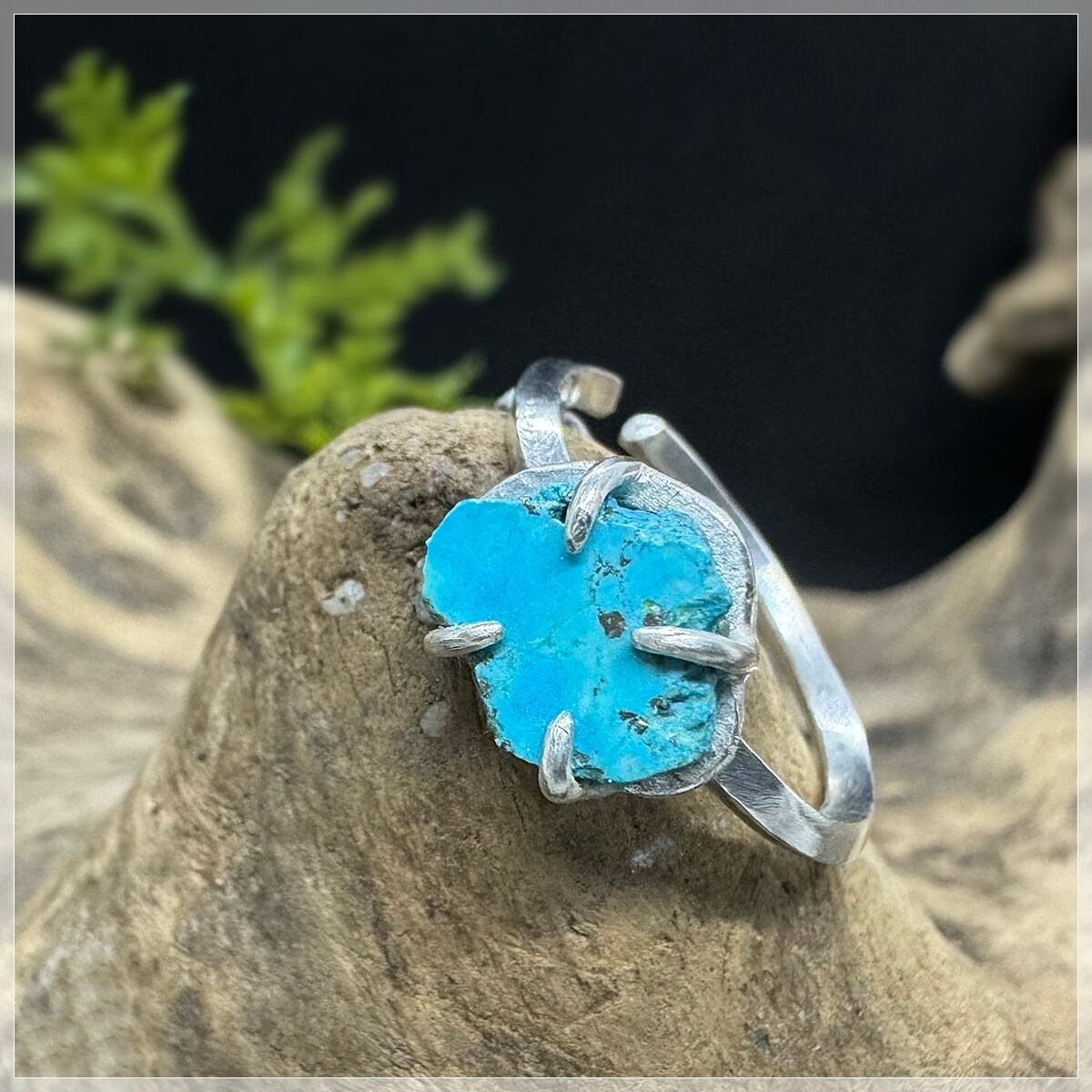 石の下の台座はマットな質感で仕上げ、ターコイズを引き立てています。