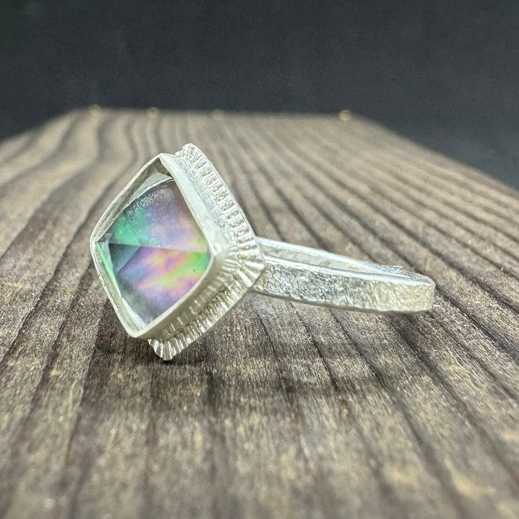 石の周りはシルバーで囲み、更に細かな飾りを入れて石を引き立てました。