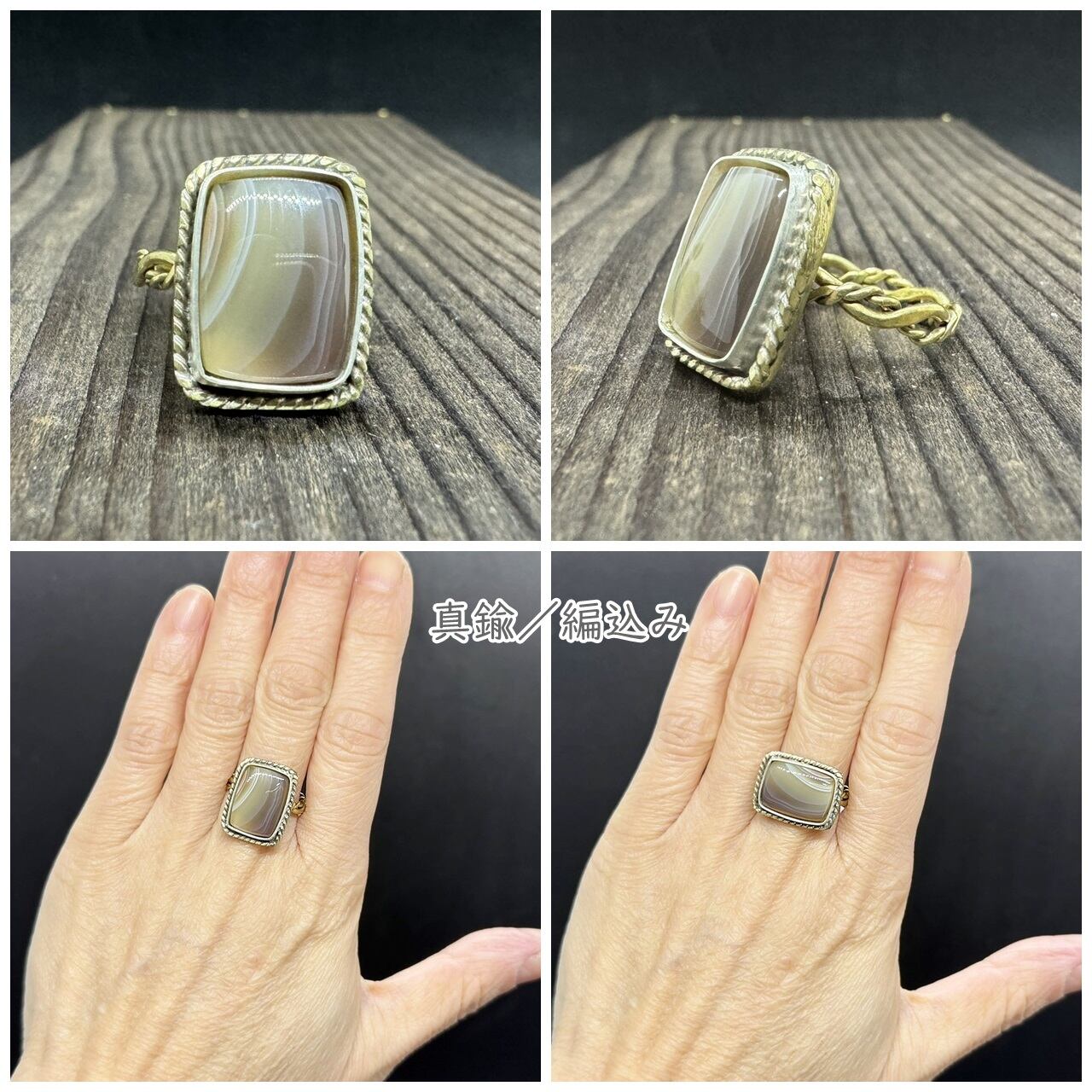 石の周りはシルバーで囲み、更にその周りは真鍮の細かなツイスト線を合わせて飾りました。