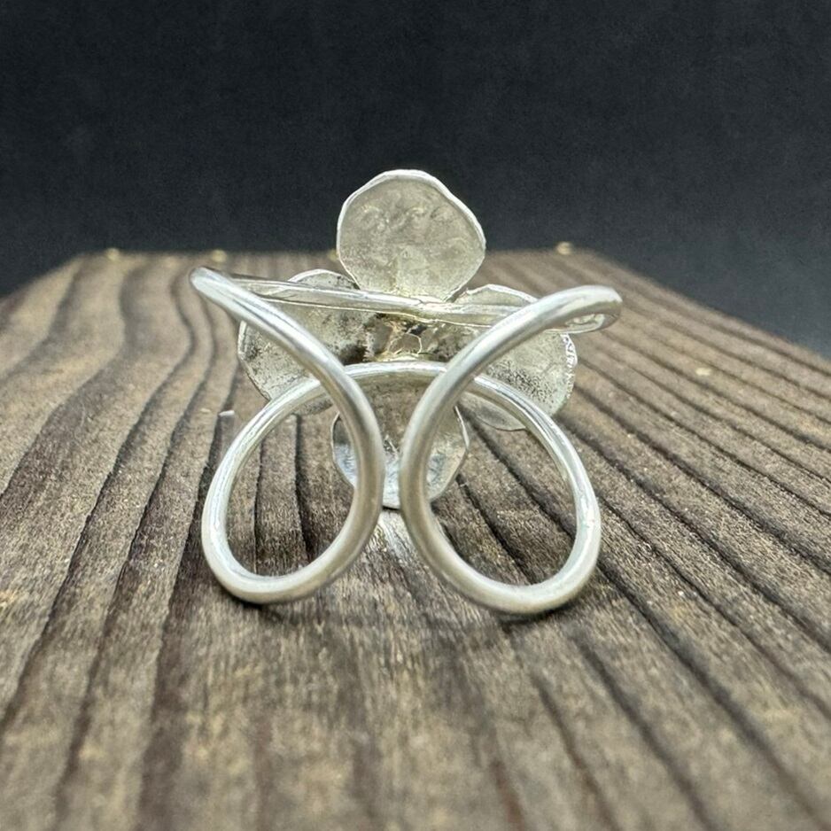 アーム部分は細めのシルバーで丸い花びらに合わせたフリーサイズ仕様のデザインにしてみました。
