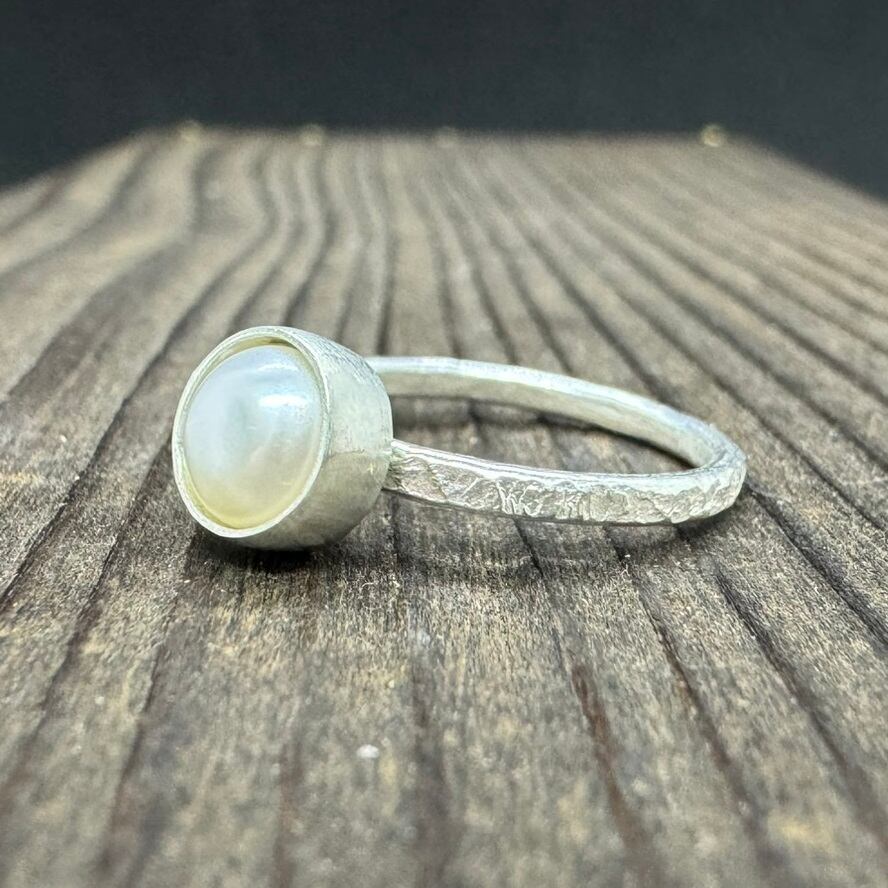淡水パールの石枠はシンプルにシルバーで囲みました。
