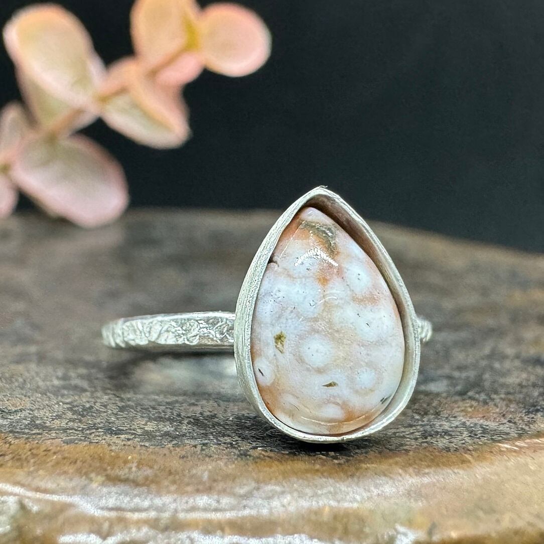 淡いピンク&オレンジ系の石の中にぼんやりと白い水玉がいっぱい入った可愛い石です。