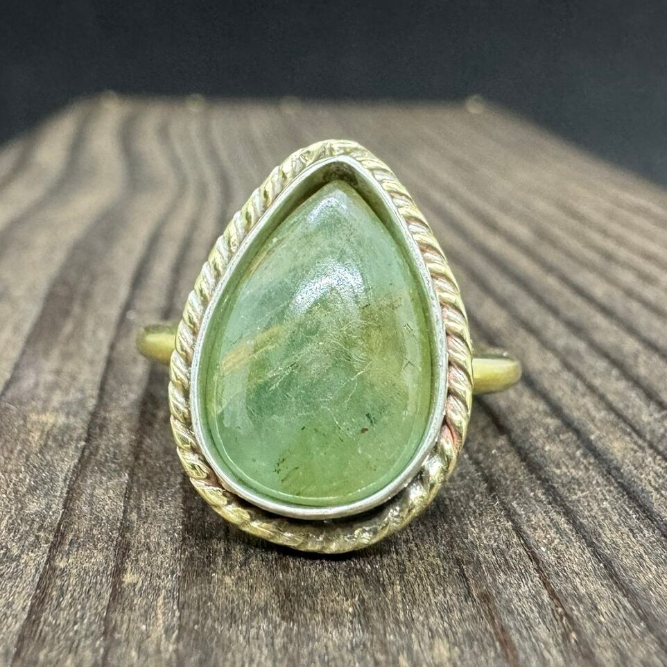 石枠はシルバーにして、周りを細かくツイストした真鍮で飾り石を引き立てました。