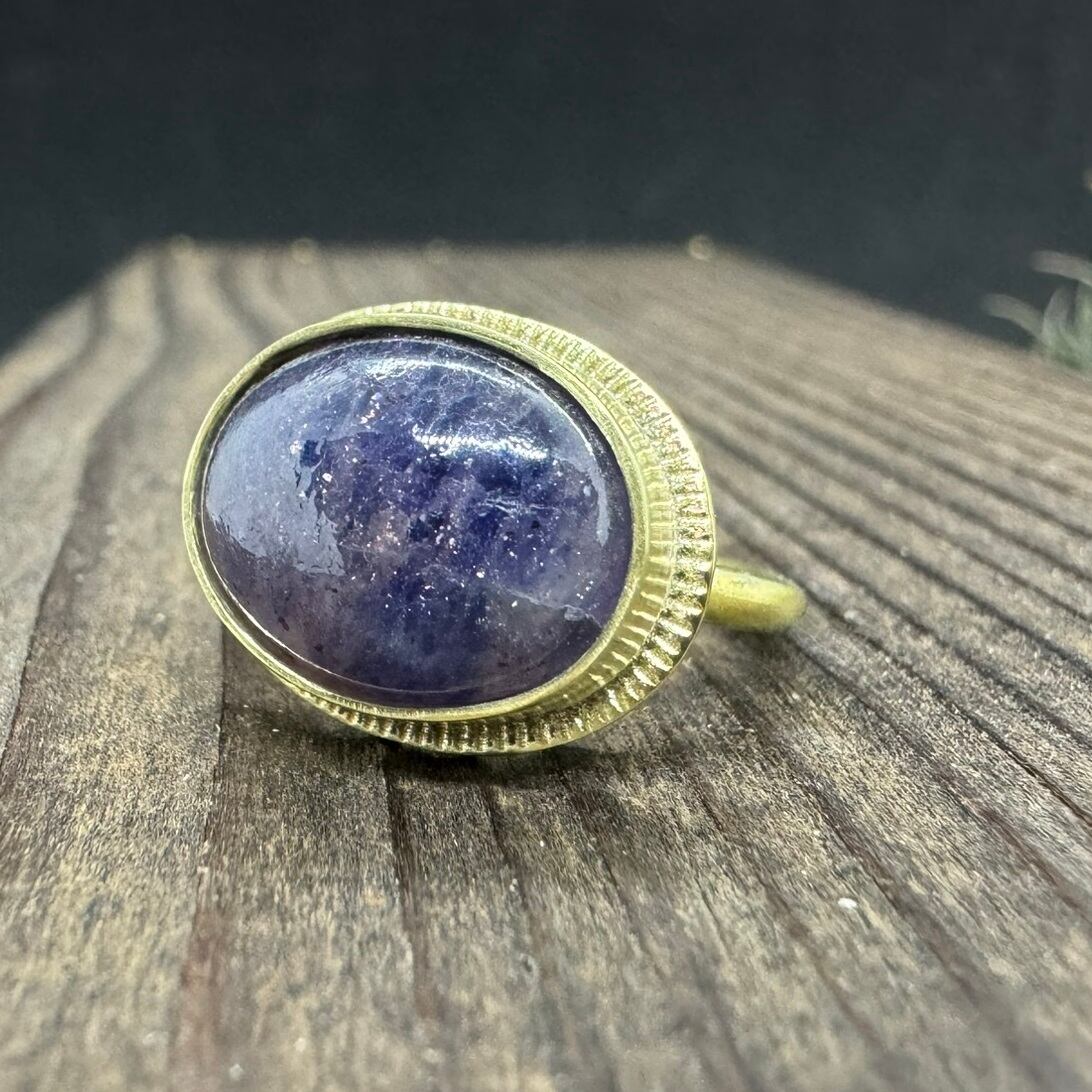 真鍮とアイオライトの色味でカッコよく存在感があり、甘すぎない大人可愛いデザインに仕上がりました。