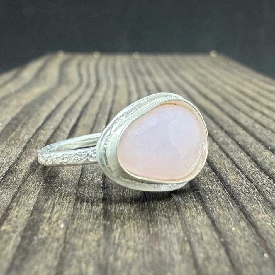 石はシンプルにシルバーで囲み、その周りにシルバーを少し残して石を引き立てました。
