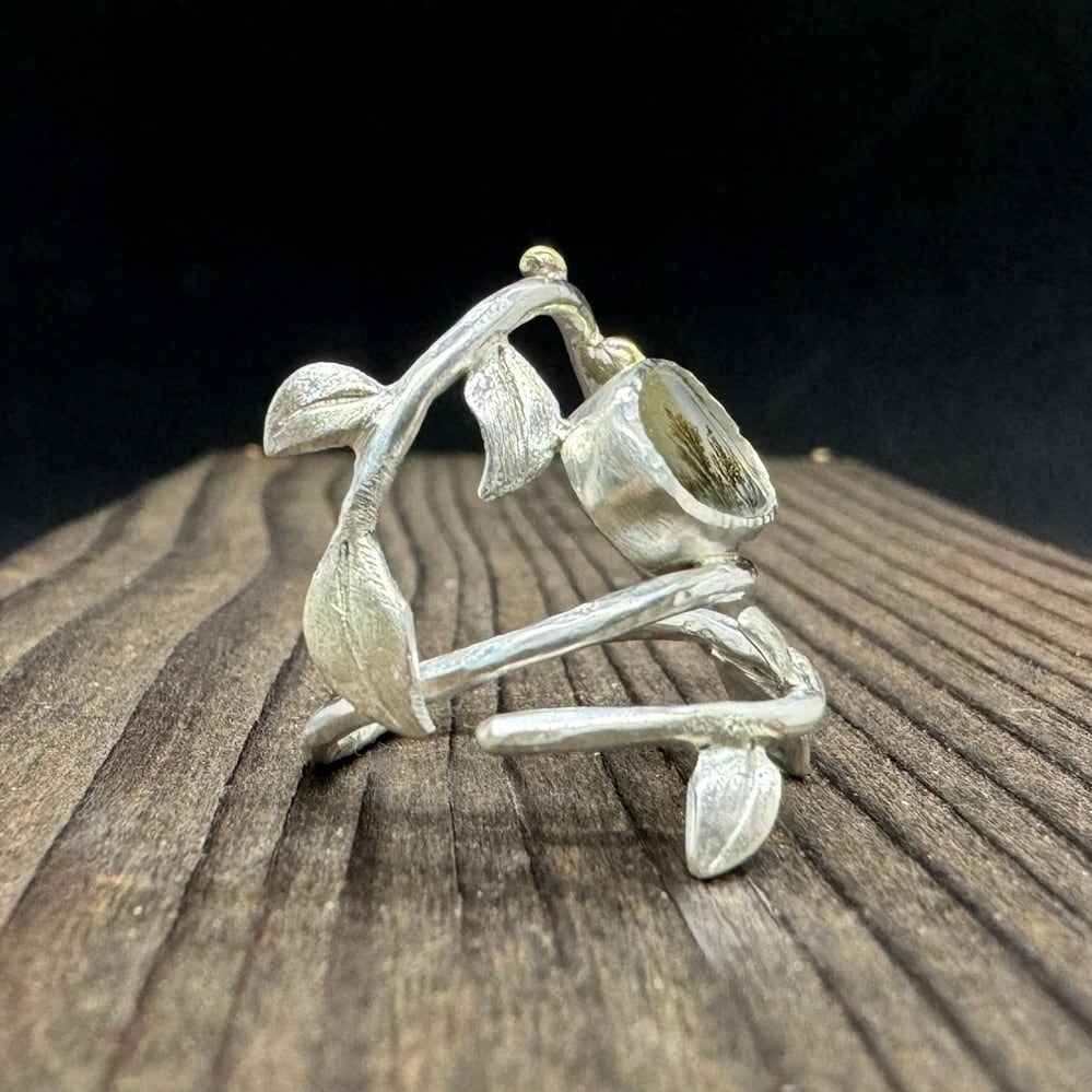 ツタには小さな実(真鍮の粒)を付けて遊び心のあるデザインにしています。