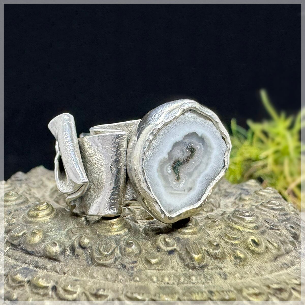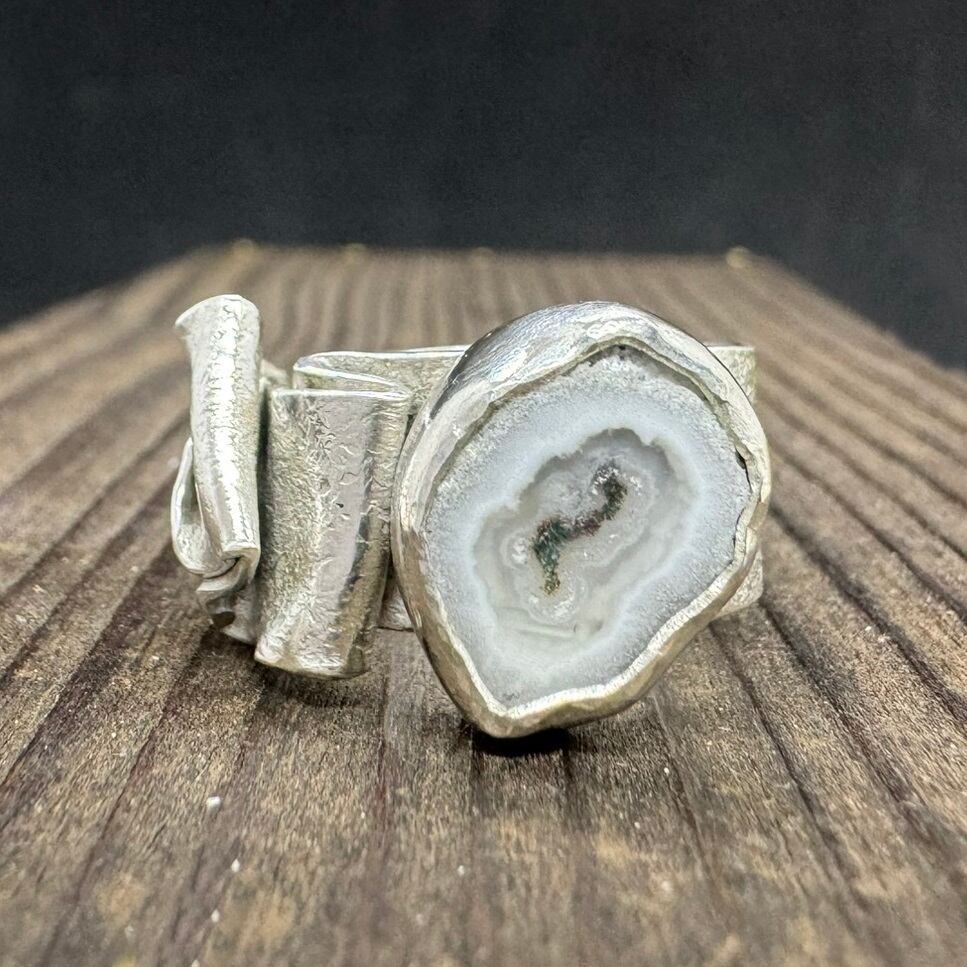 石の周りはシルバーで囲み、小さく槌目を入れてクラフト感を出しています。