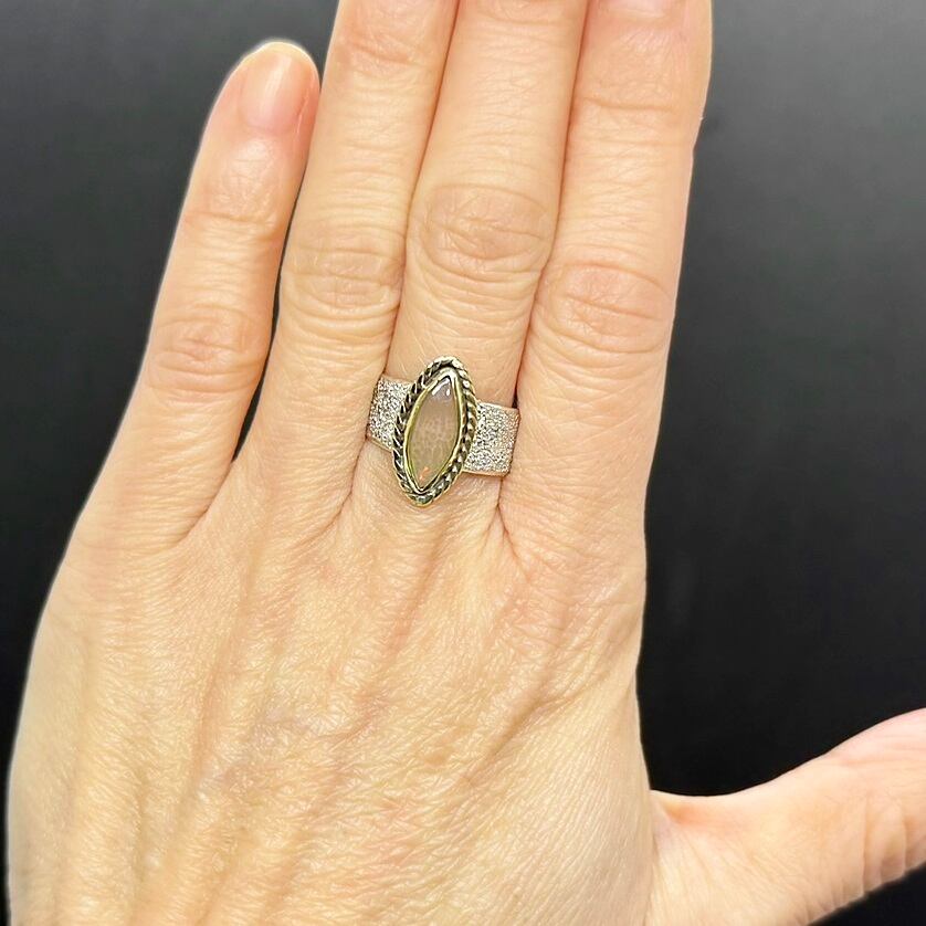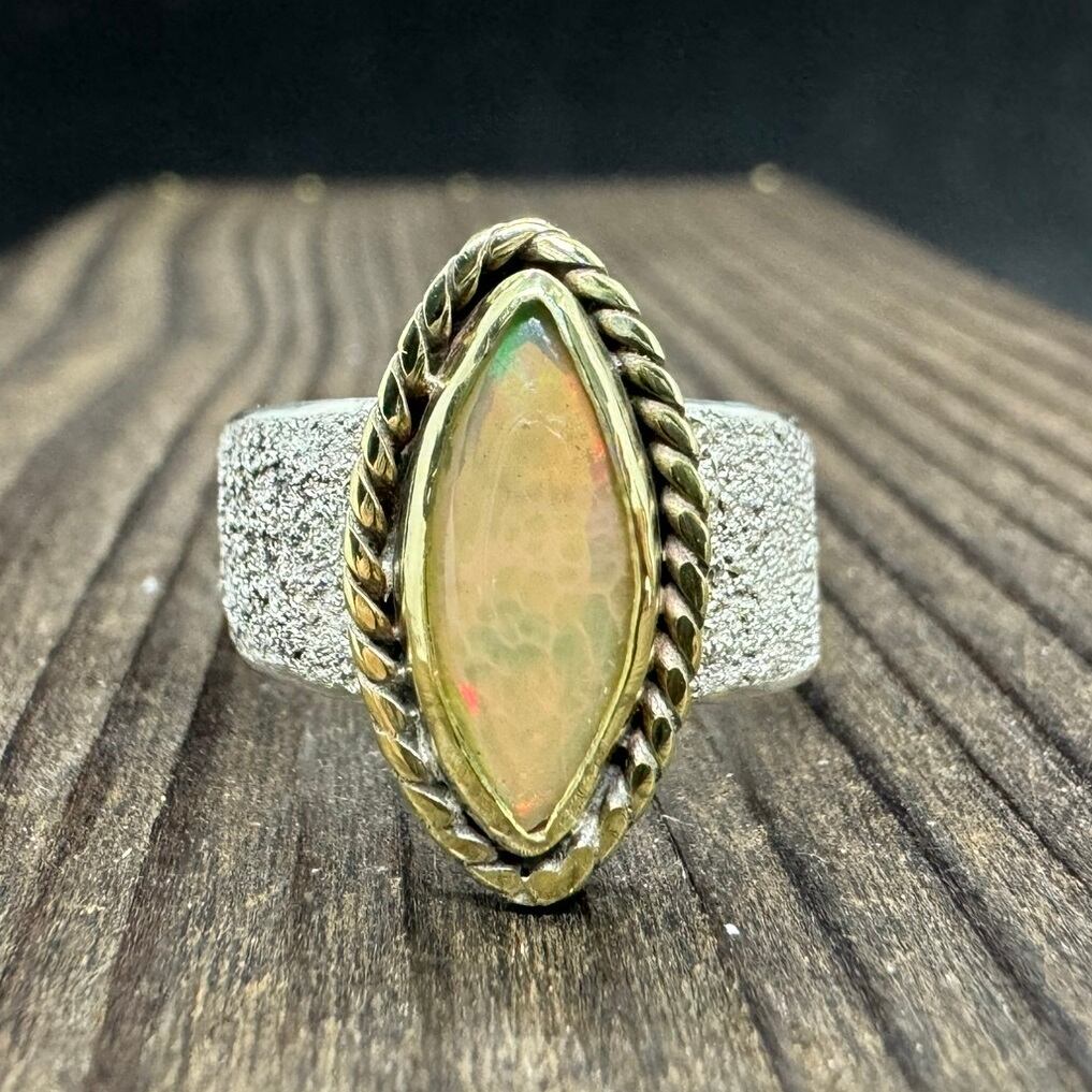 石の周りは真鍮で囲み、更にその周りに細いツイスト線を合わせて石を引き立てました。