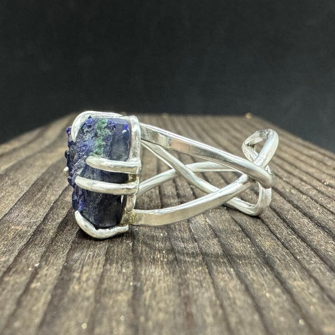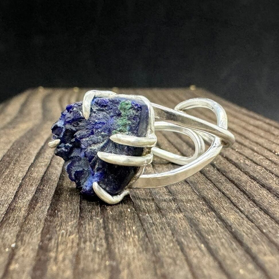 荒々しい雰囲気の形に合わせて、シルバーの爪で石を留めました。