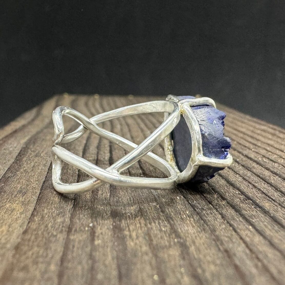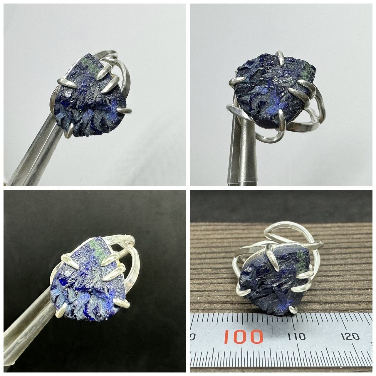 印象的な青とシルバーの色味が個性的で指をパッと彩るボリューム感と存在感のある指輪になりました。