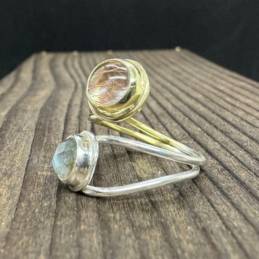 コッパールチルクォーツとラブラドライトのフリーサイズの指輪です。