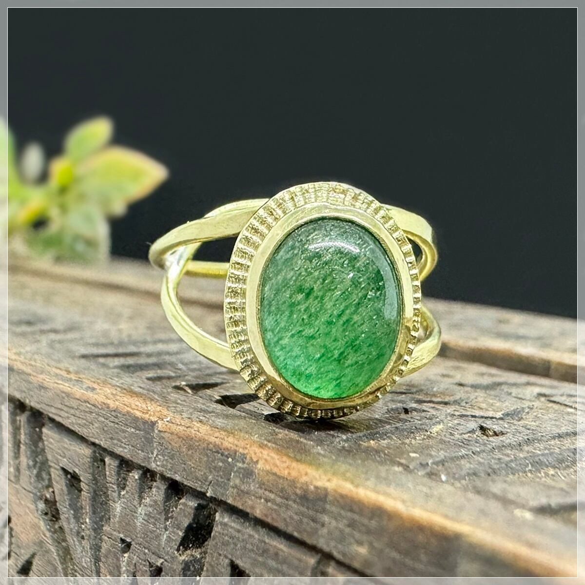 石の周りは真鍮で囲み、周りに細かな飾りを入れて石を引き立てました。