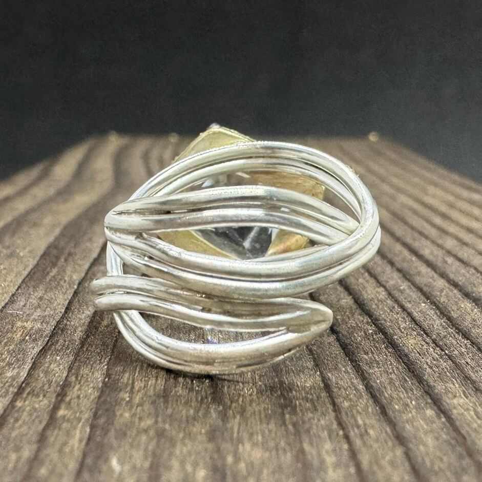 アーム部分は細めのシルバー線を2本合わせて、クロスさせたフリーサイズ仕様です。