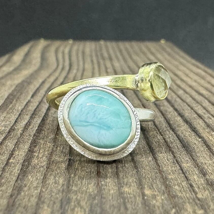 ラリマーとラブラドライトのフリーサイズの指輪です。