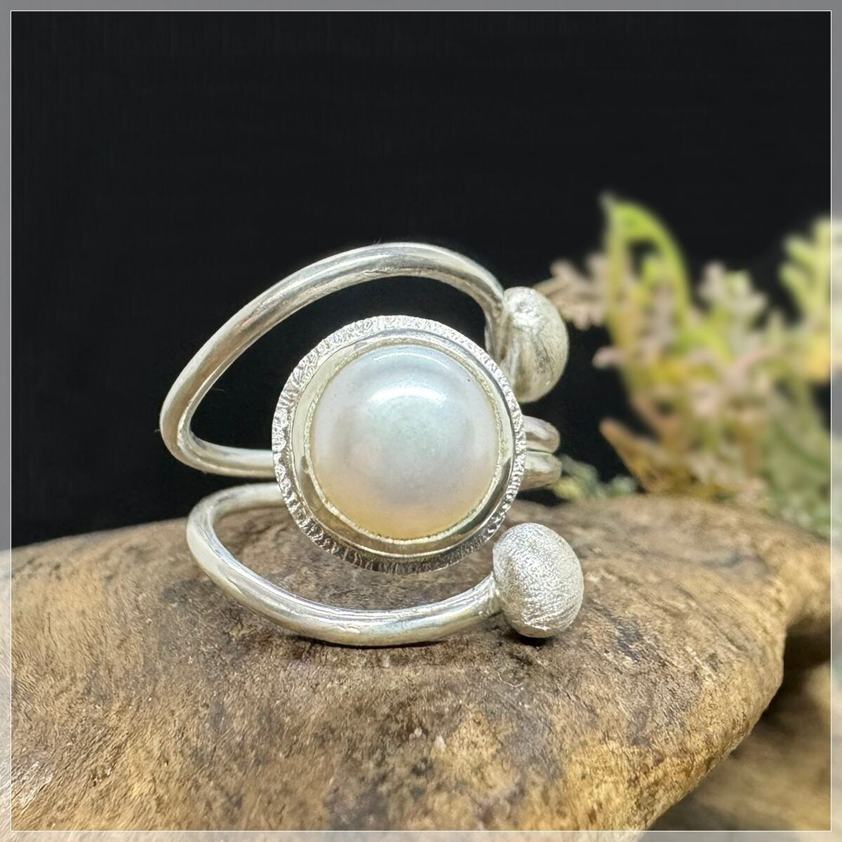 パールの周りはシルバーで囲み、更にその周りに細かな飾りを入れて石を引き立てました。