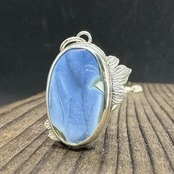 石はシルバーで囲み、石の端にある白い模様から花びらをイメージし、花を広げていくようなデザインにしてみました。
