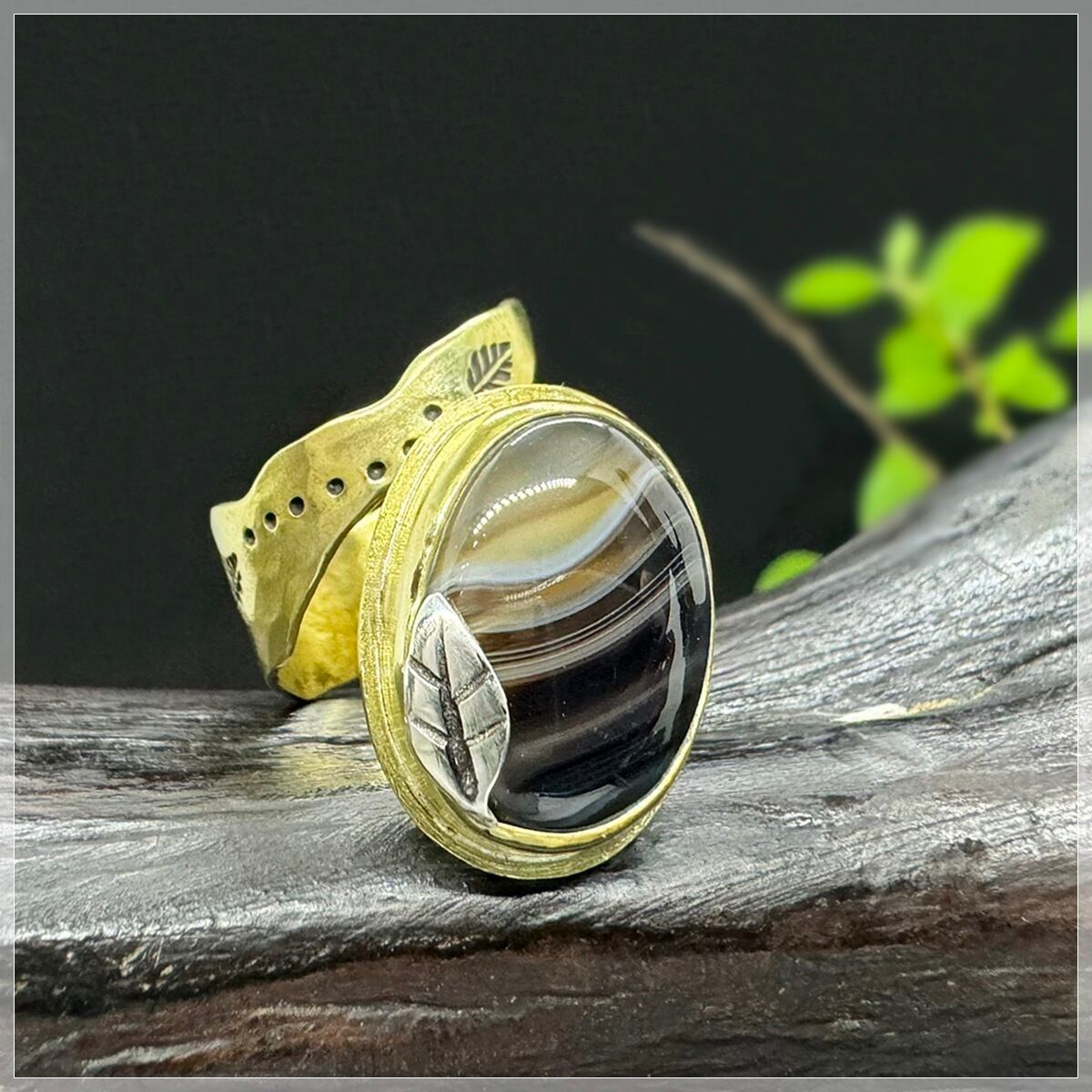 縞模様が特徴的なバンデッドアゲートのリングです。
