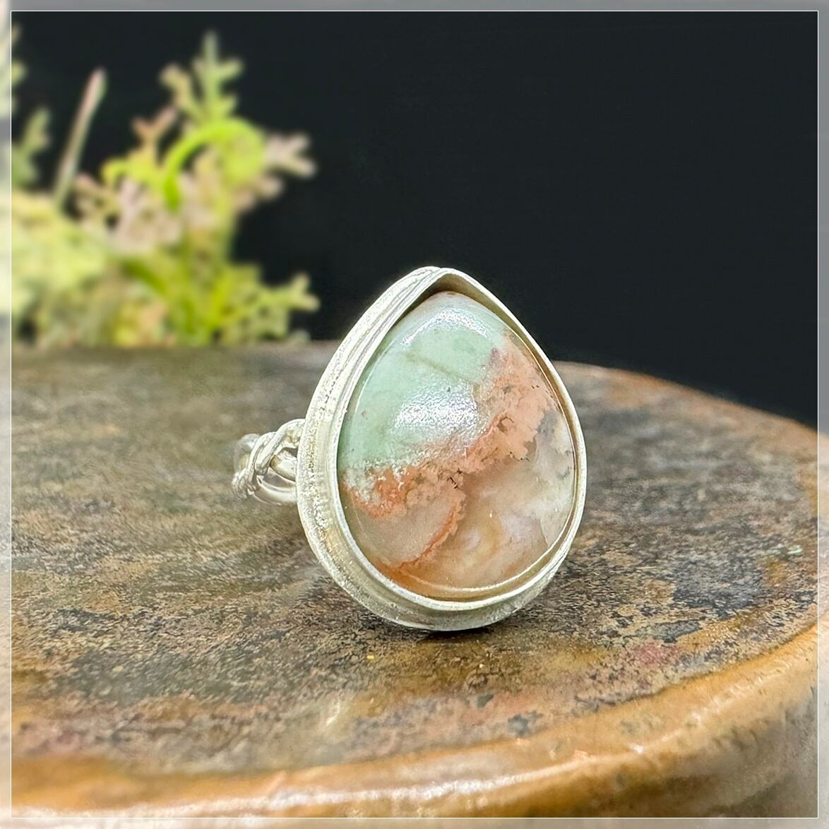 柔らかい色味が印象的な大人可愛い指輪になりそうです。