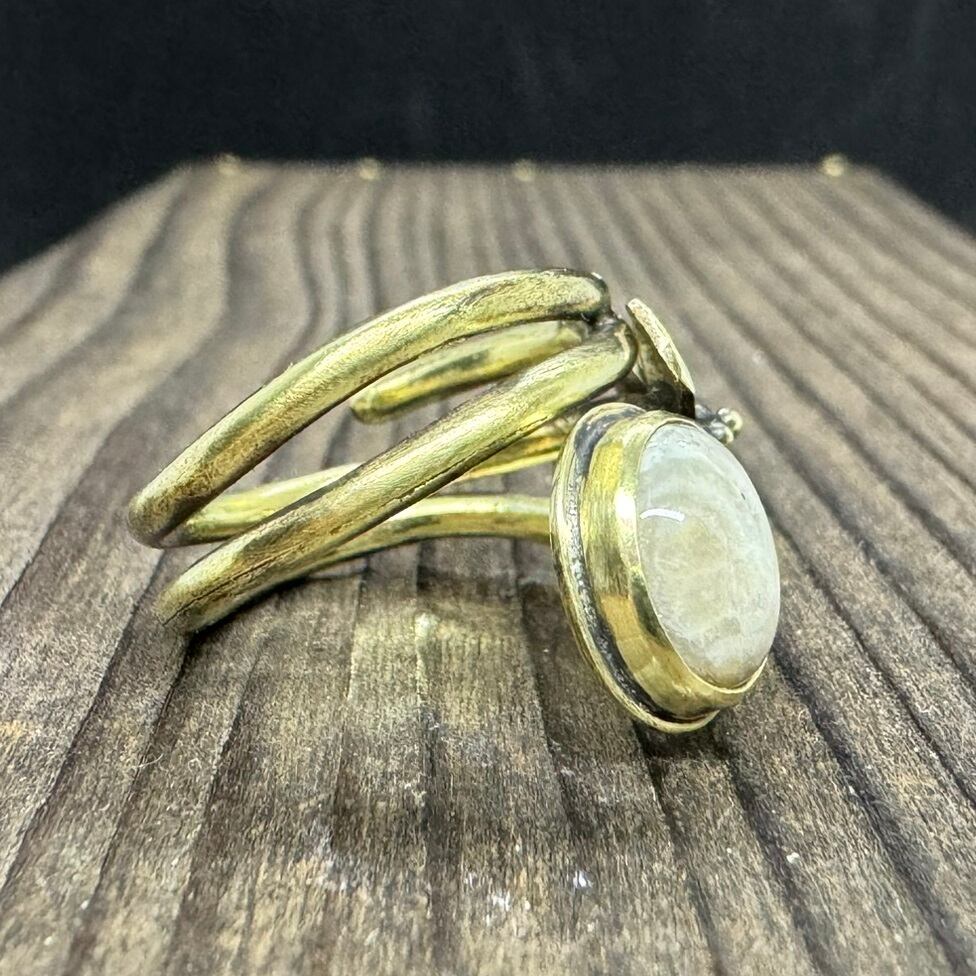 石は真鍮で囲み、周りに真鍮を少し残して石を引き立てました。