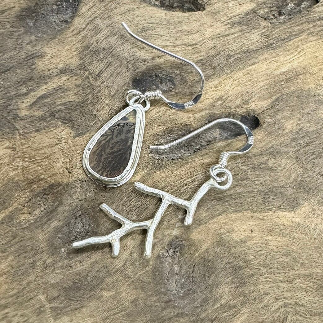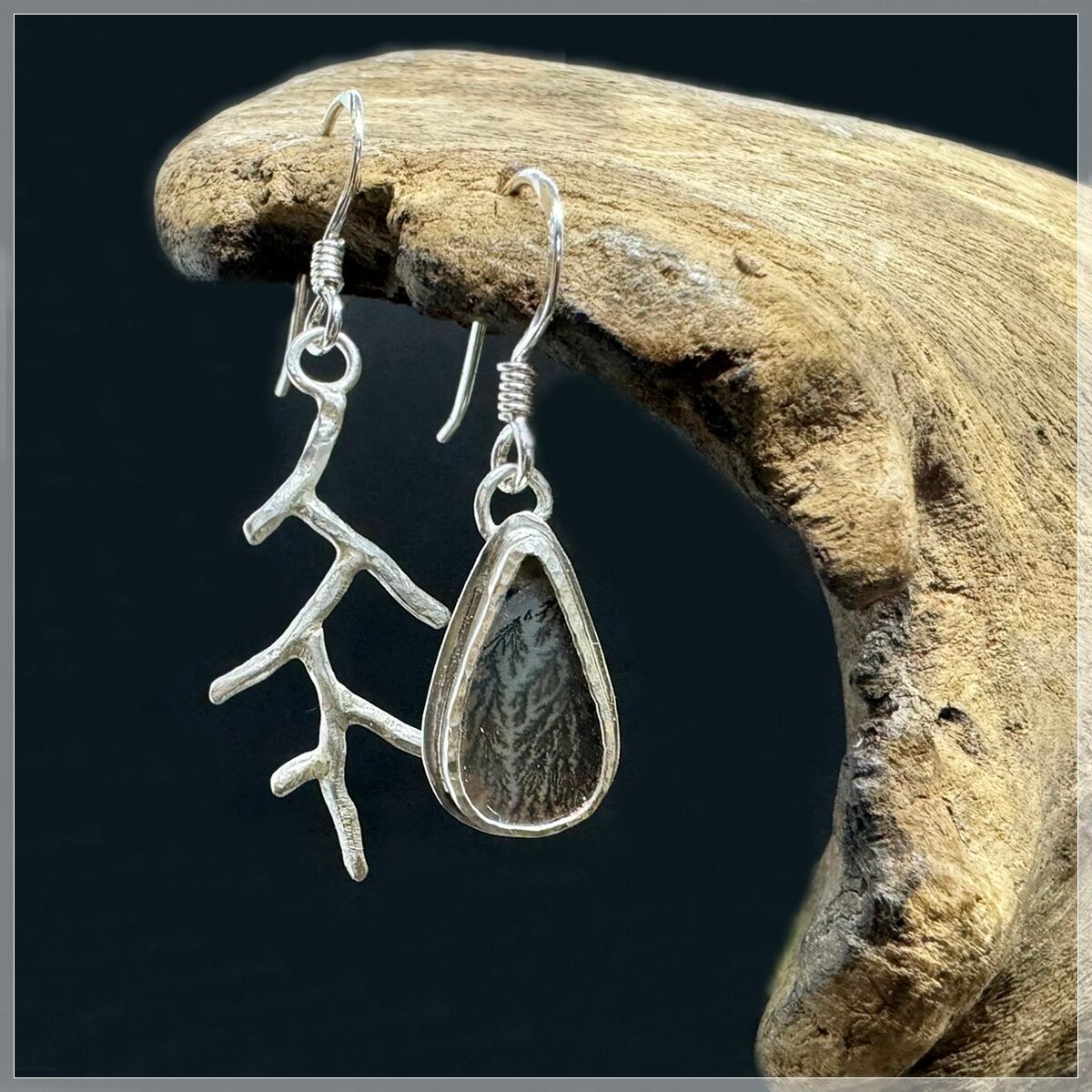 樹木模様がハッキリ出たデンドリティックアゲートのピアスです。