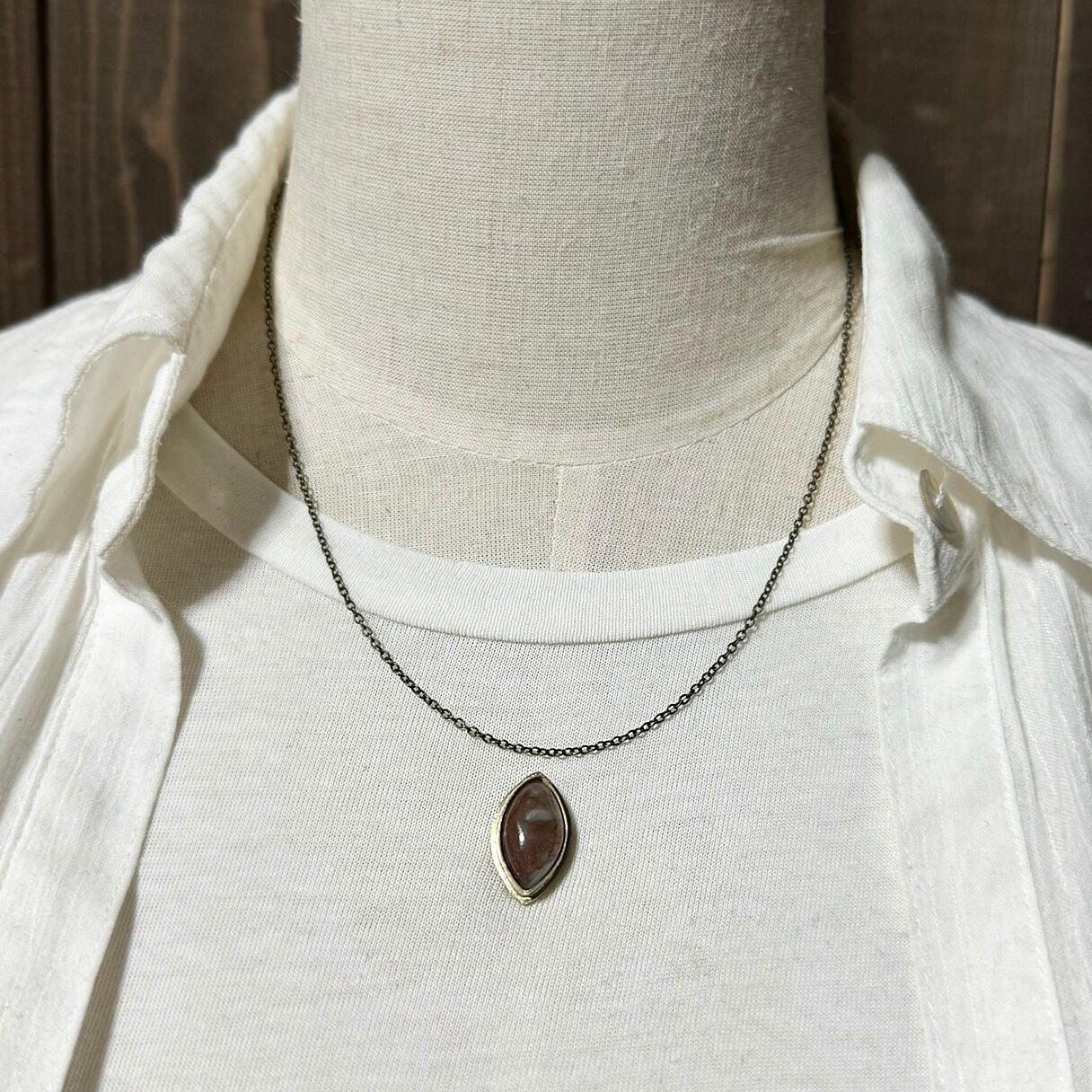 いろんなお洋服に似合う個性的なネックレスになりそうです。