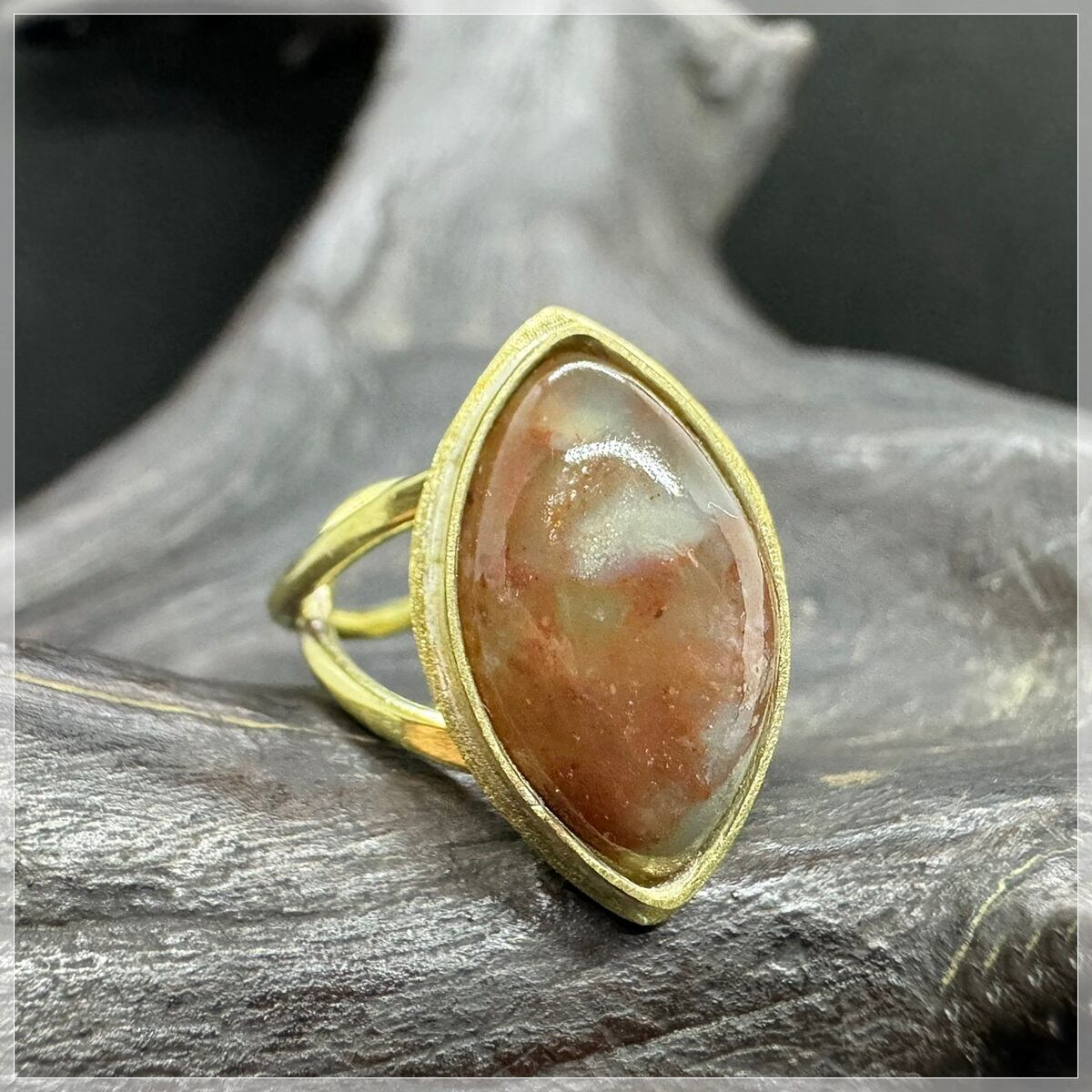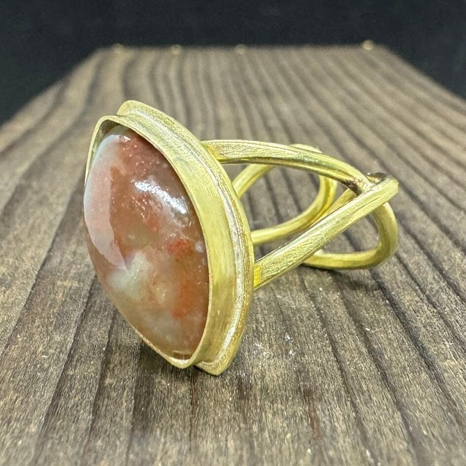 石は真鍮で囲み、その周りに真鍮を少し残して石を引き立てました。