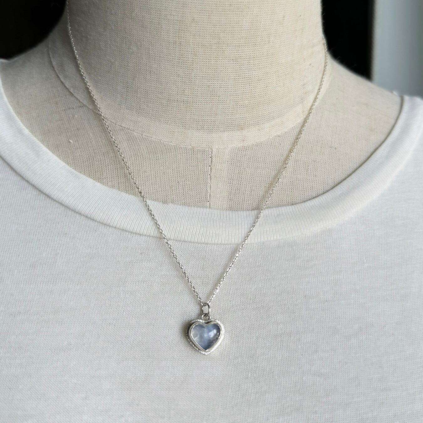 ぷっくりハート型が可愛いデュモルチェライトインクォーツのネックレスです。