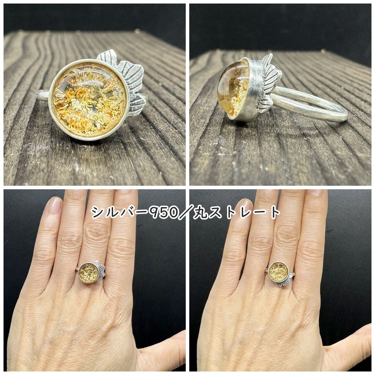 石はシルバーで囲み、周りにアクセントとして花びらをつけてみました。