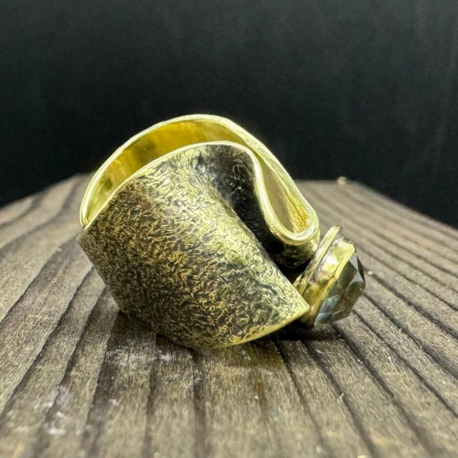 キラキラしたラブラドライトに、幅と動きのあるアームを合わせました。