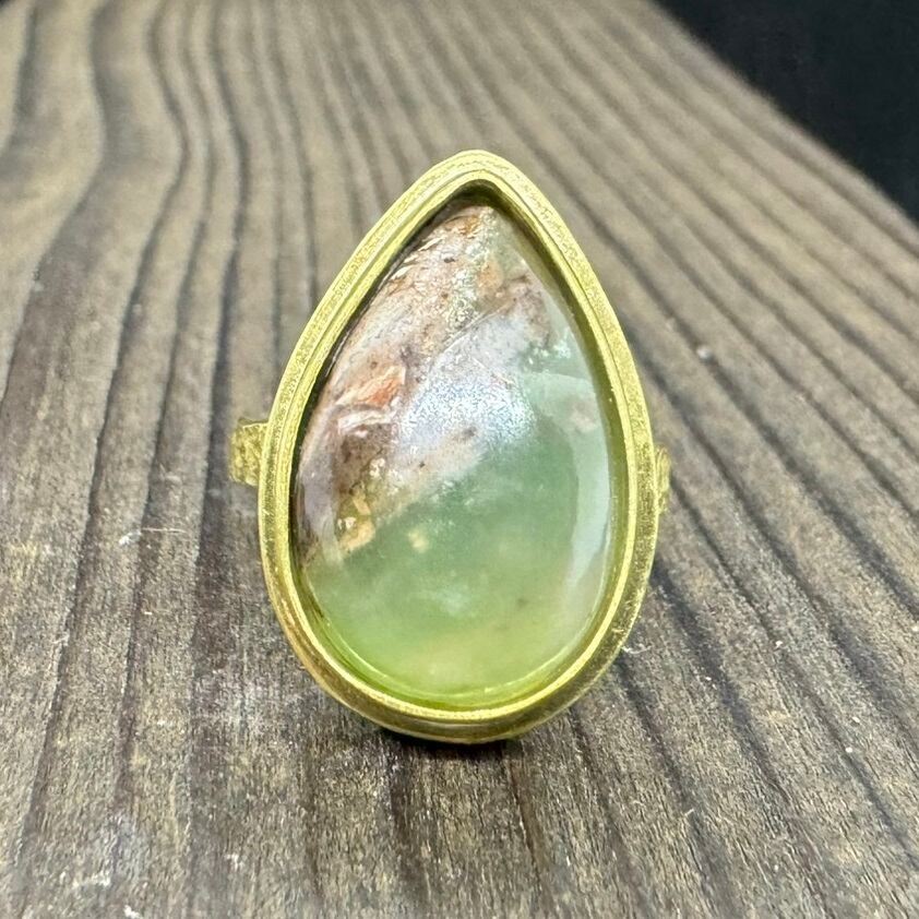 しっかりしたサイズ感があり、透明感のある柔らかいグリーンとワイルドな茶色がバランスよく入った綺麗な石です。