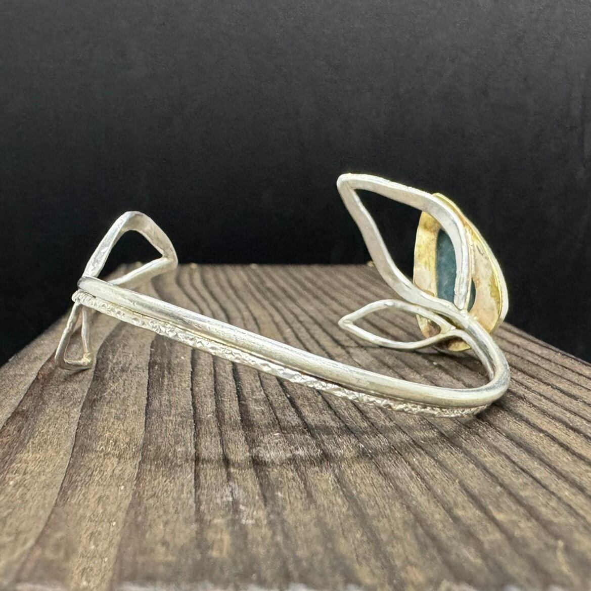 石はシルバーで囲み、周りの真鍮に細かな飾りを入れて石を引き立てました。
