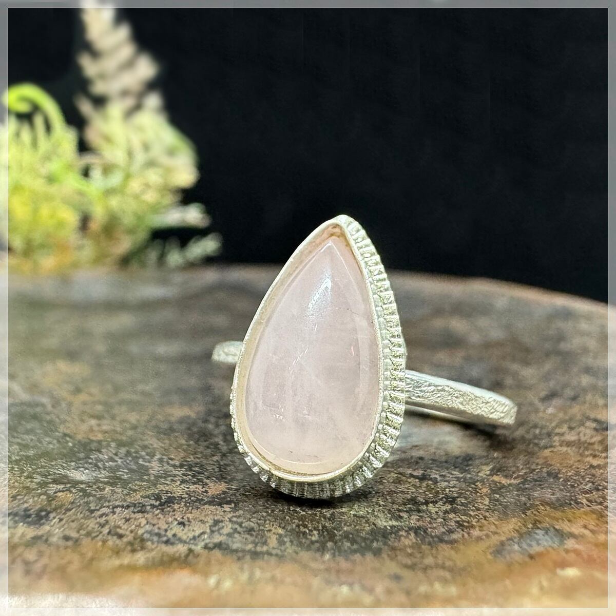 石の周りはシンプルにシルバーで囲み、更に細かな飾りを入れて石を引き立てました。