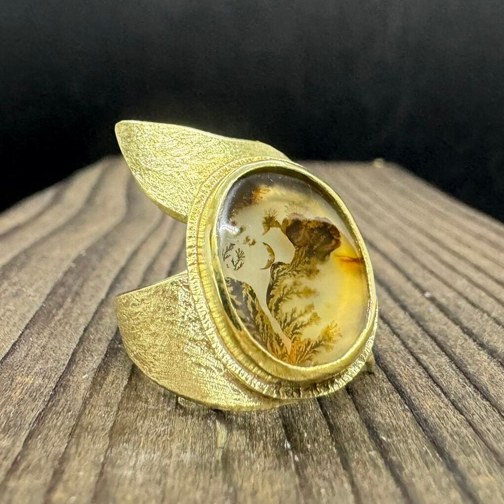 石は真鍮で囲み、周りの真鍮に細かな飾りを入れて石を引き立てました。