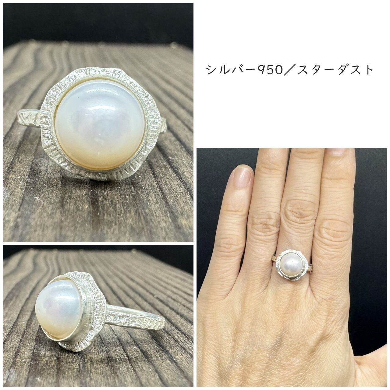 淡水パールの石枠はシルバーで囲み、周りをフワフワした花びらのイメージにしてみました。
