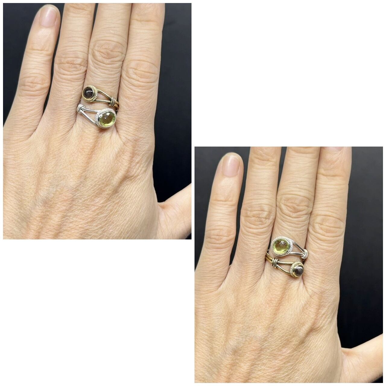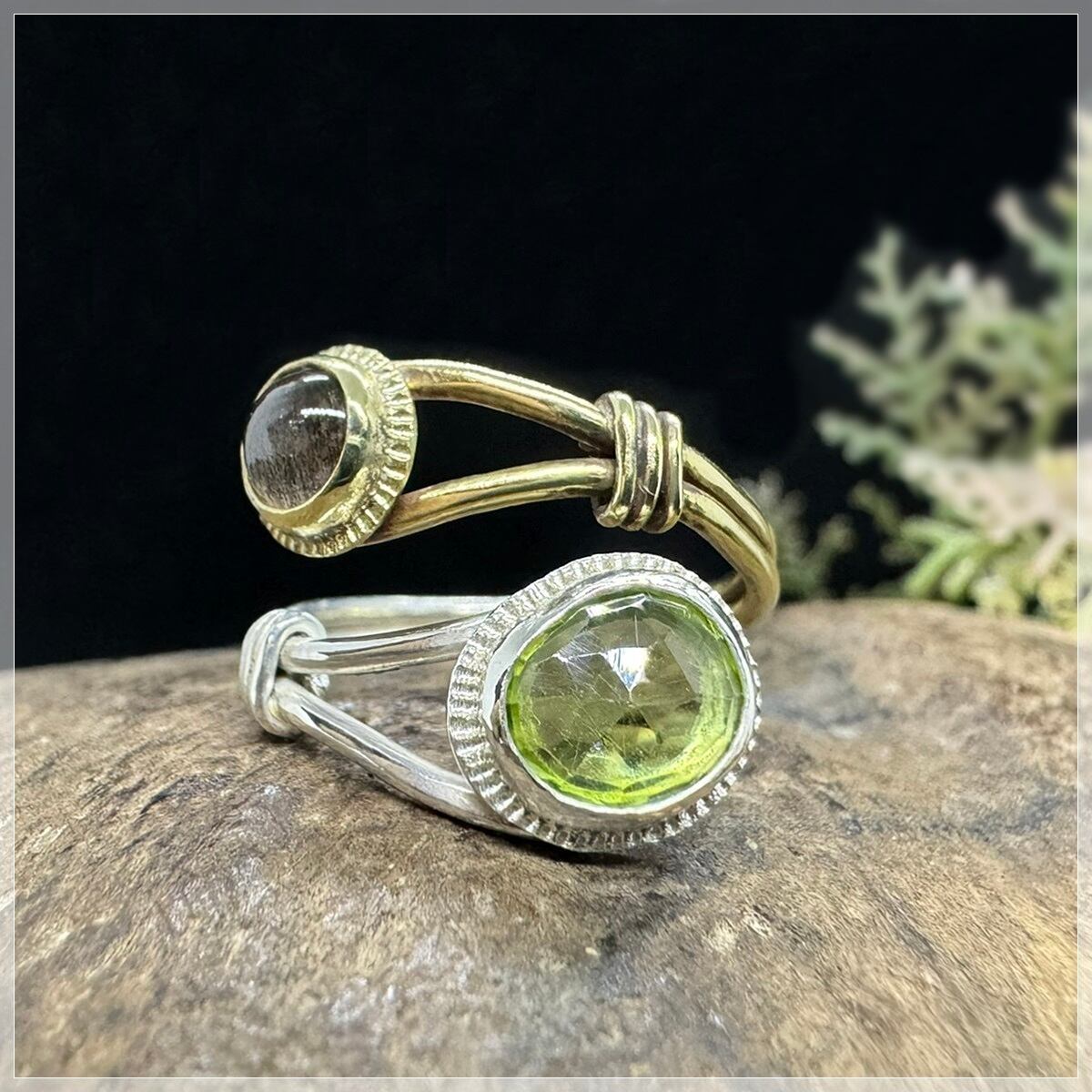 ローズカットのペリドットと小さなムーンストーンの指輪です。