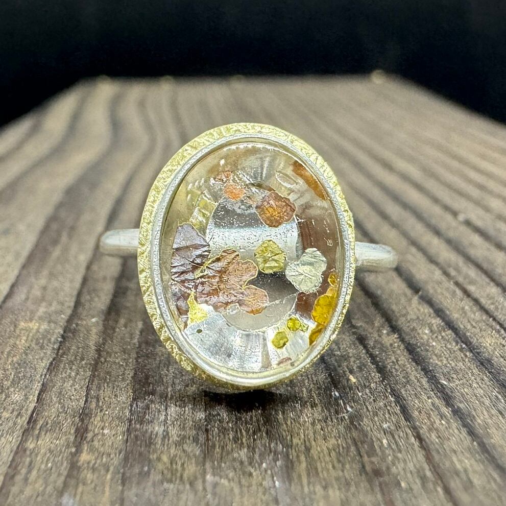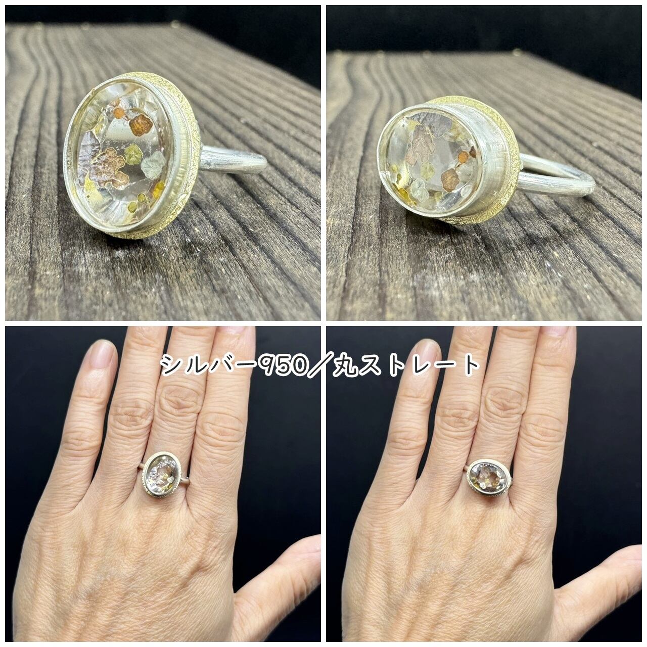 色とりどりの内包物が魅力の大人可愛い指輪になりそうです。