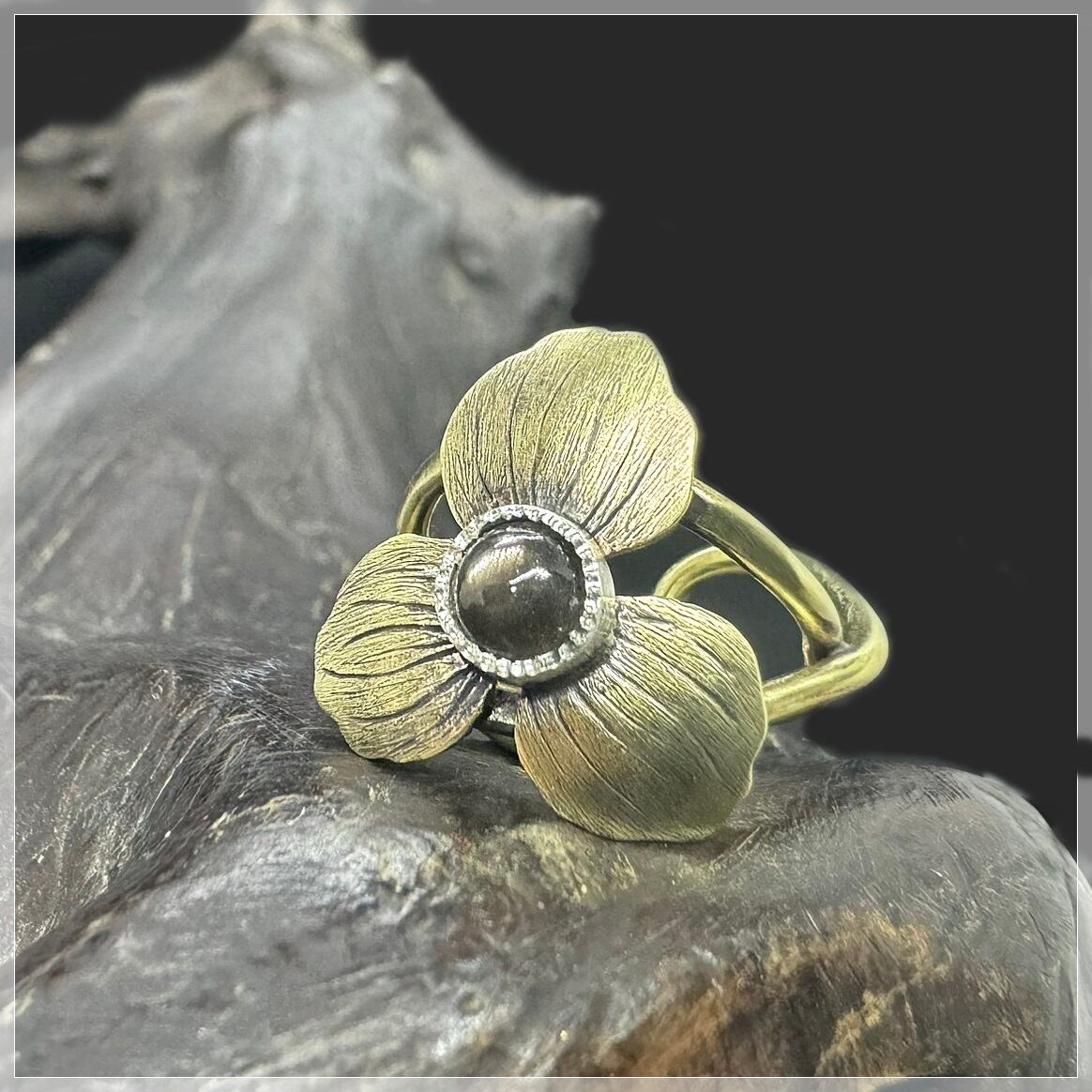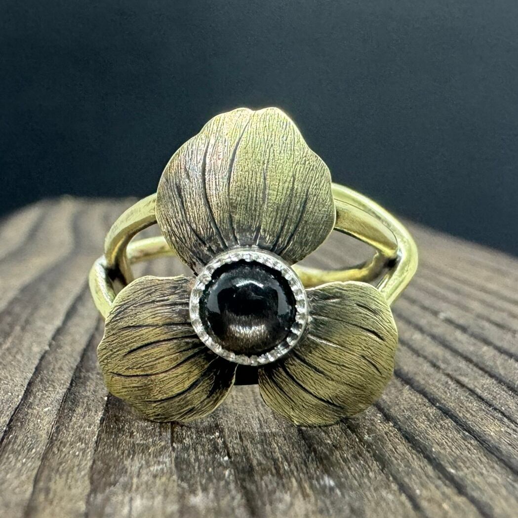 花びらには丁寧に花脈を入れて、全体的に黒く燻してアンティークな雰囲気に仕上げました。