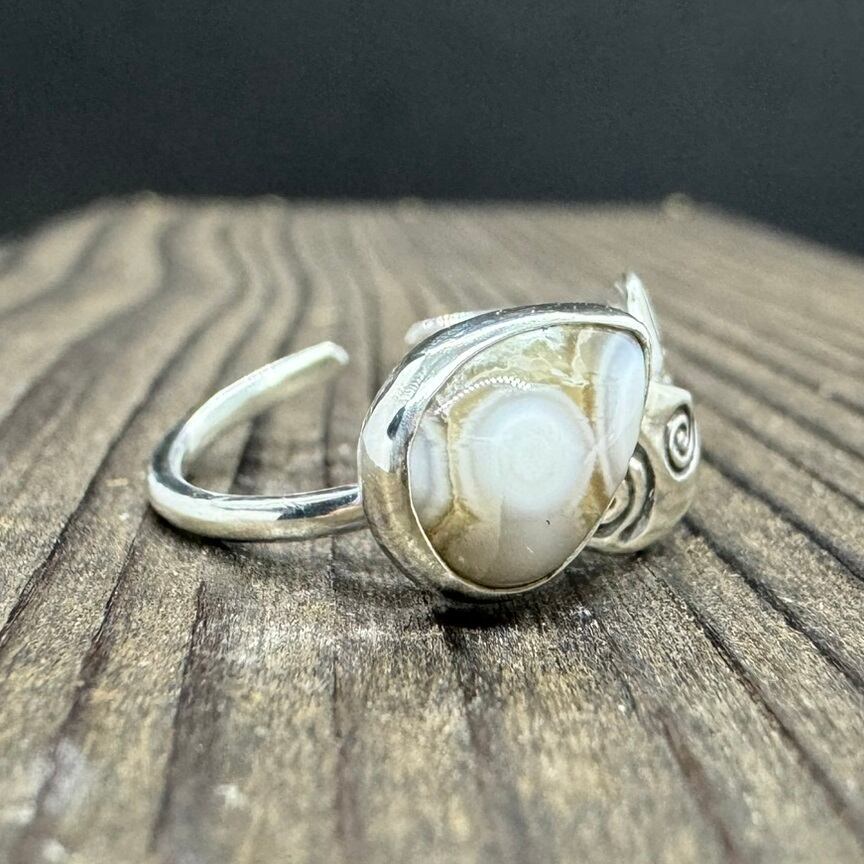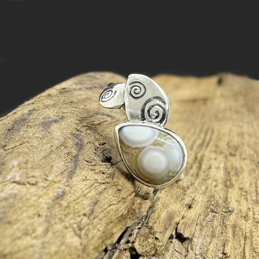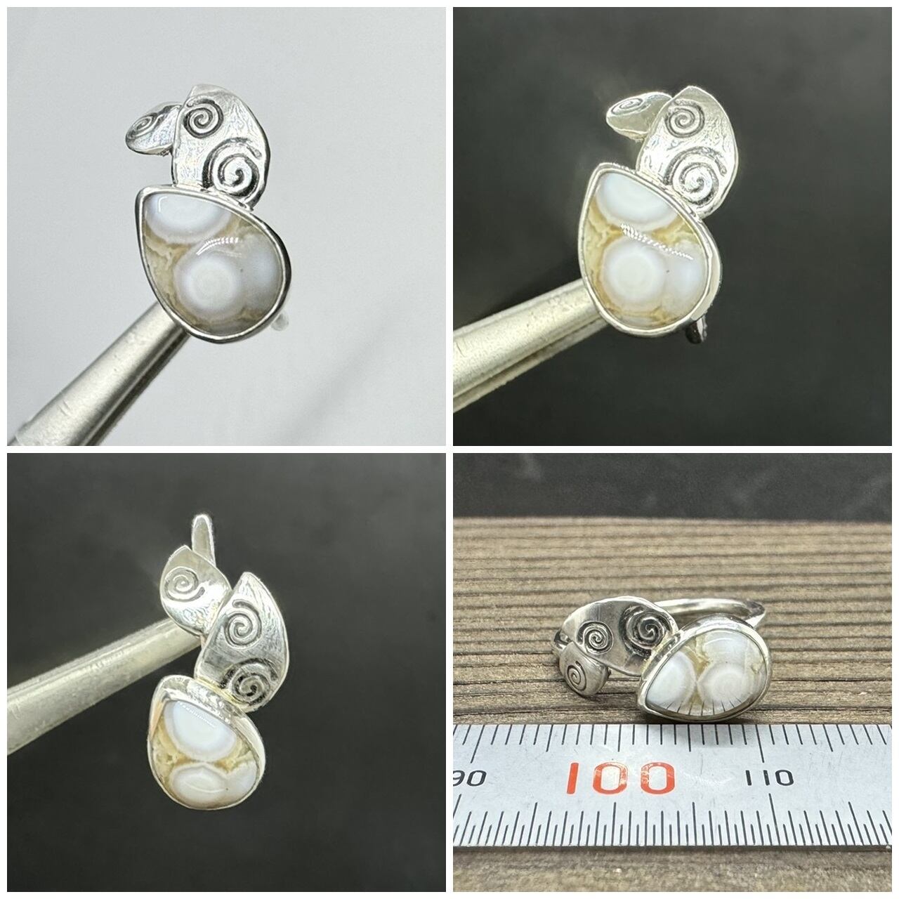 石の形、石の模様に合わせてシルバーのモチーフを合わせました。