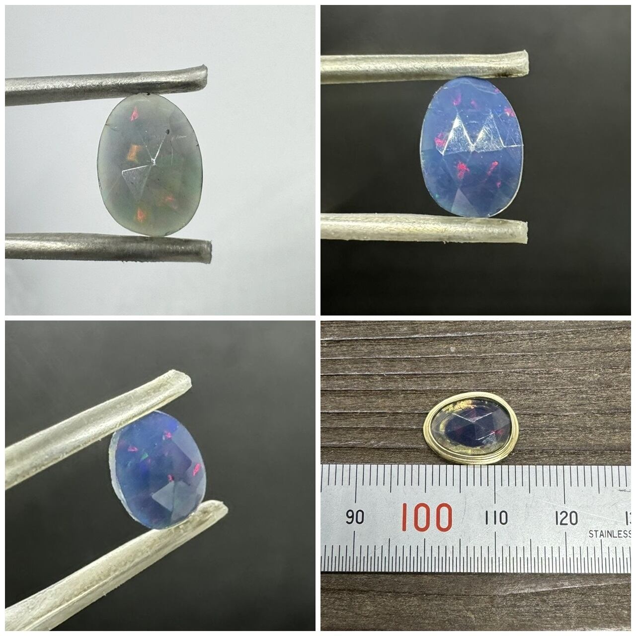 透明感のあるグレー系で歪な楕円形のオパールです。
