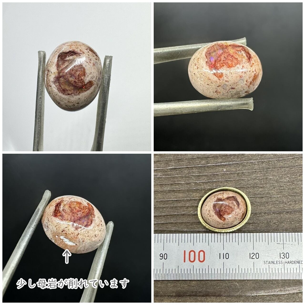 赤色、緑色の遊色が見えます。