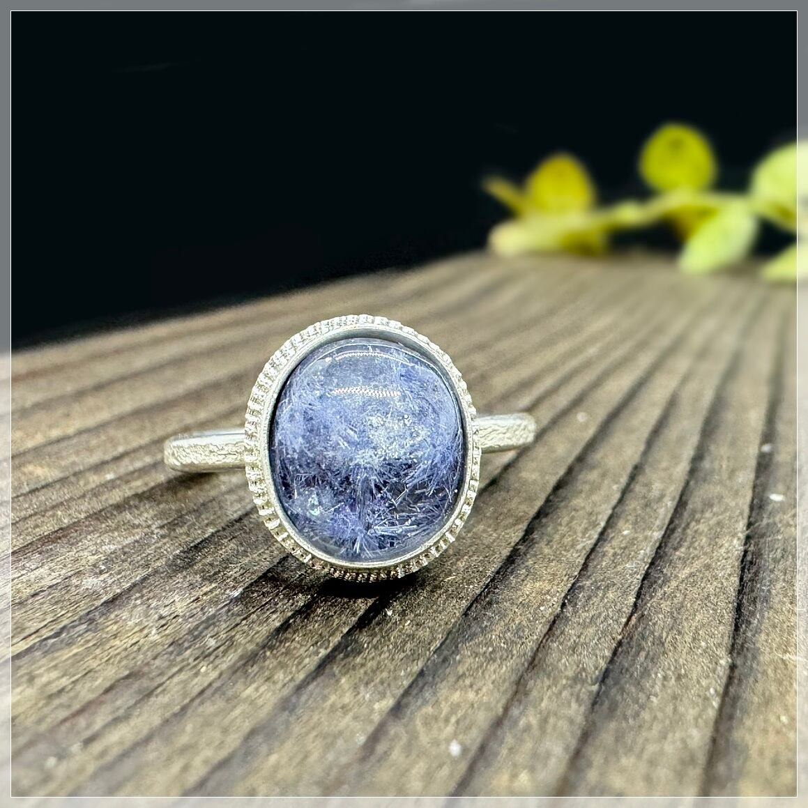 小さめ楕円形のデュモルチェライトインクォーツです。
