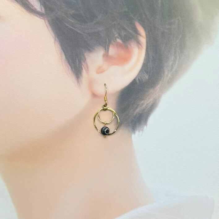 真鍮の華奢な輪モチーフを重ね合わせてユラユラ揺れるデザインに、バンデッドアゲートをぶら下げました。